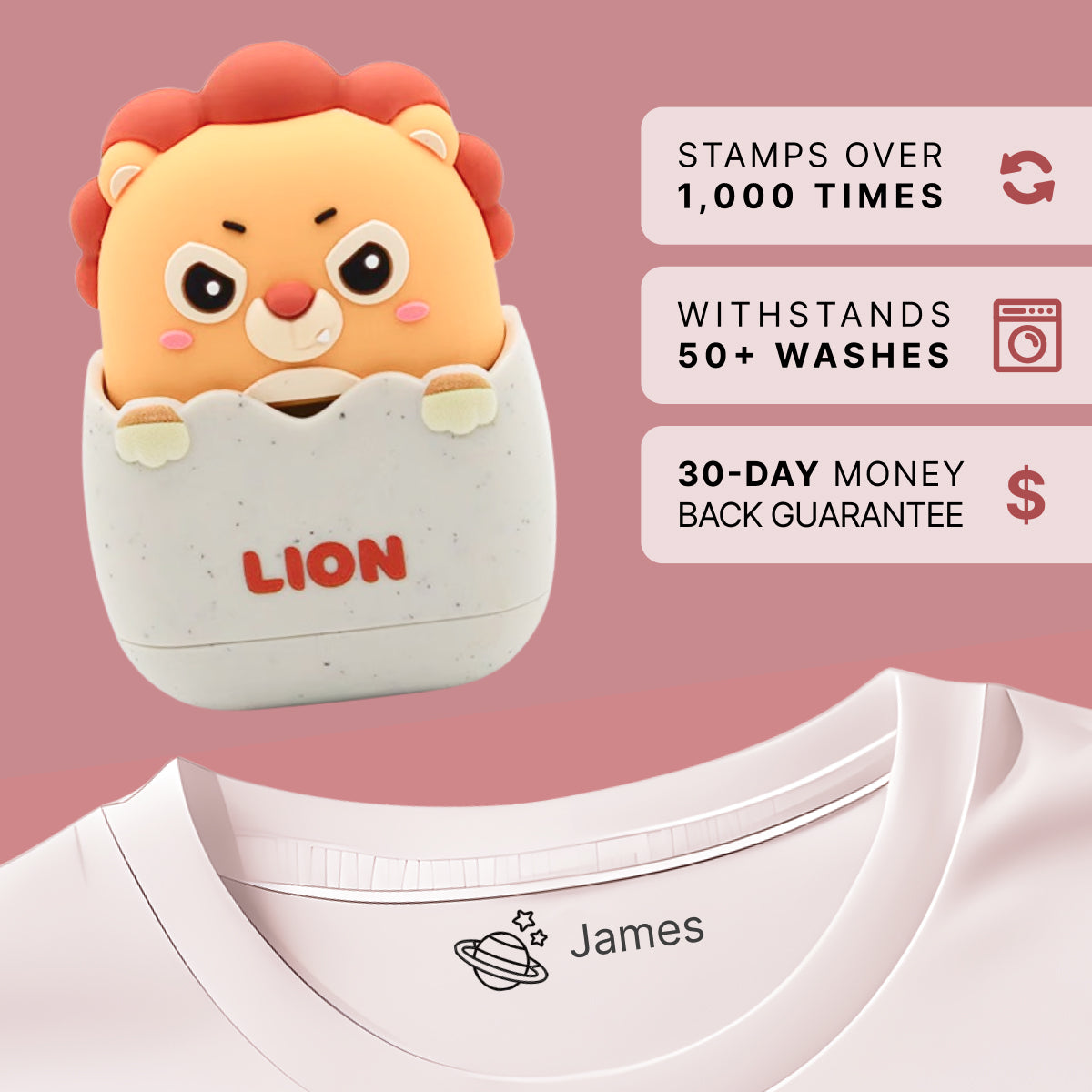 Once you receive your name stamp, it's recommended that you test it on a piece of paper to ensure that the stamp is functioning properly. After testing, place the clothing item you want to stamp on a flat surface and press the stamp firmly on to the desired area. Our name stamps are designed to last up to 50 washes and can be used up to 1000 times. Once the ink runs out, you can purchase refill ink.